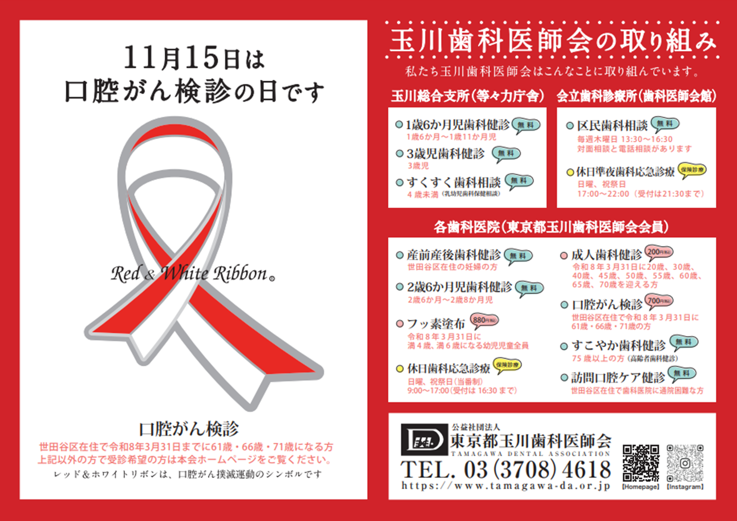 レッド&ホワイトリボンは、口腔がん撲滅運動のシンボルです。