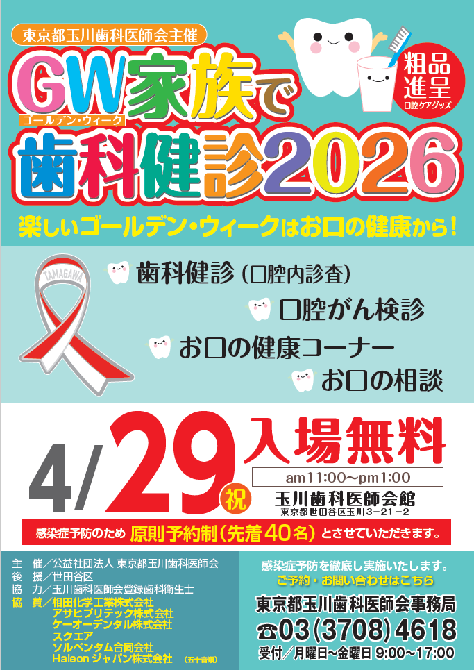 本会恒例のイベント「GW家族で歯科健診」を下記の通り開催することとなりましたので、お知らせ申し上げます。